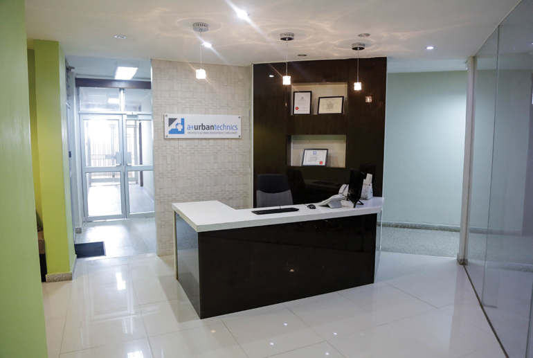 The A Plus Urban Techincs Offices were developed with the strictest adherence to our architectural code of development. This code consists of three sections. Design Efficiently, Design Beautifully and Design Strong. The Design was done using all modern architectural design principles while maintaining all aesthetics suited for a building of this nature.